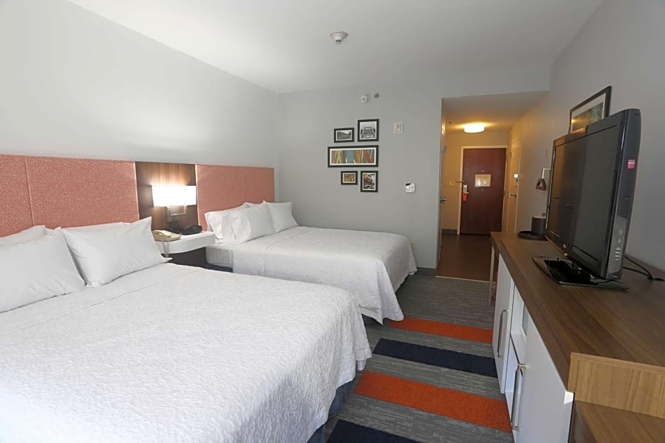 This mobility and hearing accessible, non-smoking room features two queen-sized beds, and an accessible bath tub. The room also has a visual alarm and notification devices for the doorbell or door knock and incoming phone calls. The room features comfortable soft seating, a HDTV, and easy to operate alarm clock/radio. The free WiFi access will help you stay connected while on the road. If you prefer not to work at the desk, you can use the convenient lapdesk instead. You'll also enjoy the convenience of having a coffeemaker with tea service and iron/ironing board in your room. Any corresponding photo may not reflect the specific accessible room type or room feature.